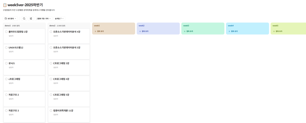 25년도 2학기부터 운영을 인계받아, week5ver라는 이름으로 해당 활동을 이어가고 있다. week5ver 모집글