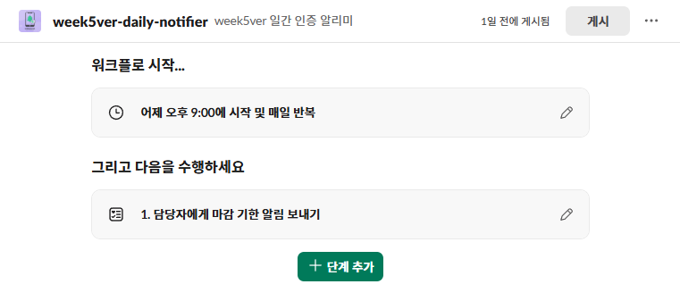반면 Slack Workflow는 슬랙 내부에서 작동하는 내장형 자동화 기능으로, 별도 서버나 외부 API 없이 실행된다.